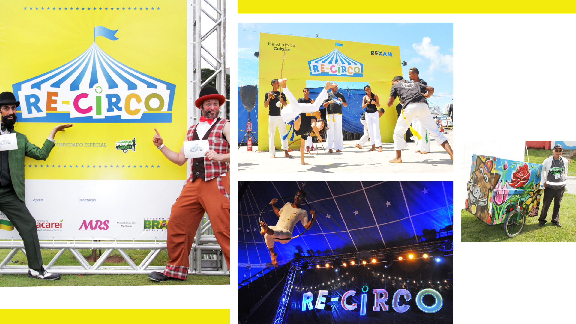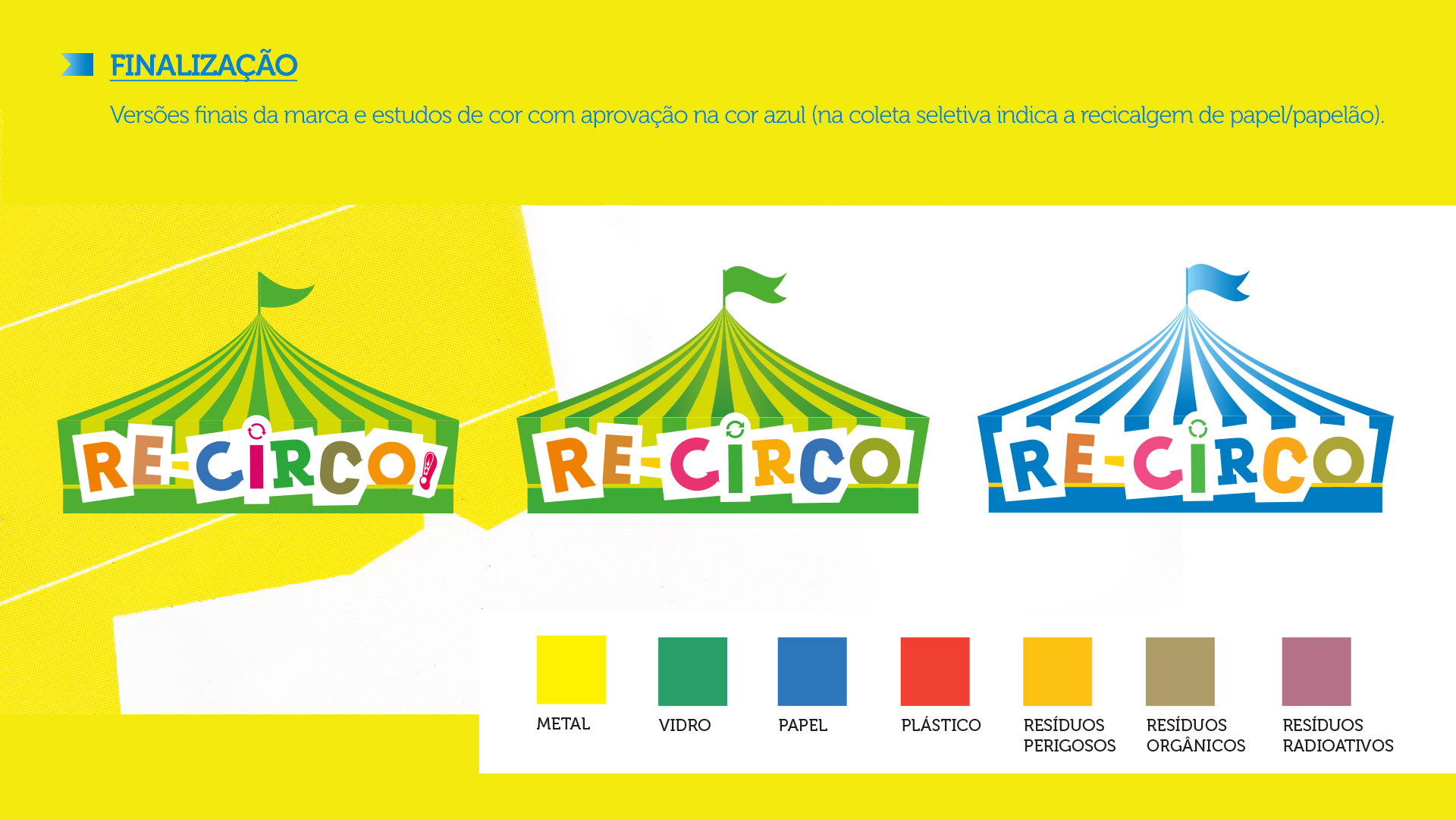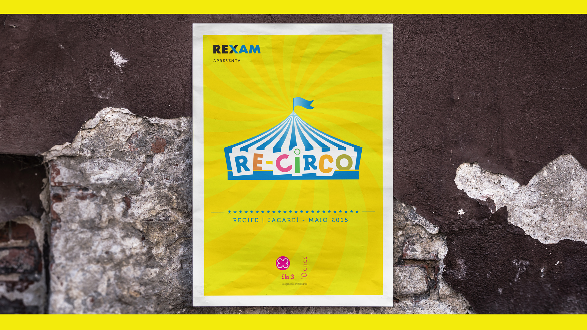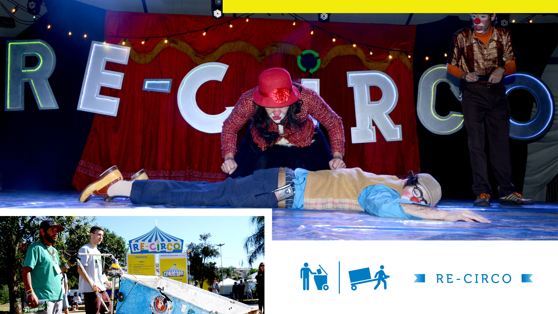 Projeto gráfico para o projeto cultural Re-Circo, circo itinerante com foco em meio ambiente, reciclagem e sustentabilidade.